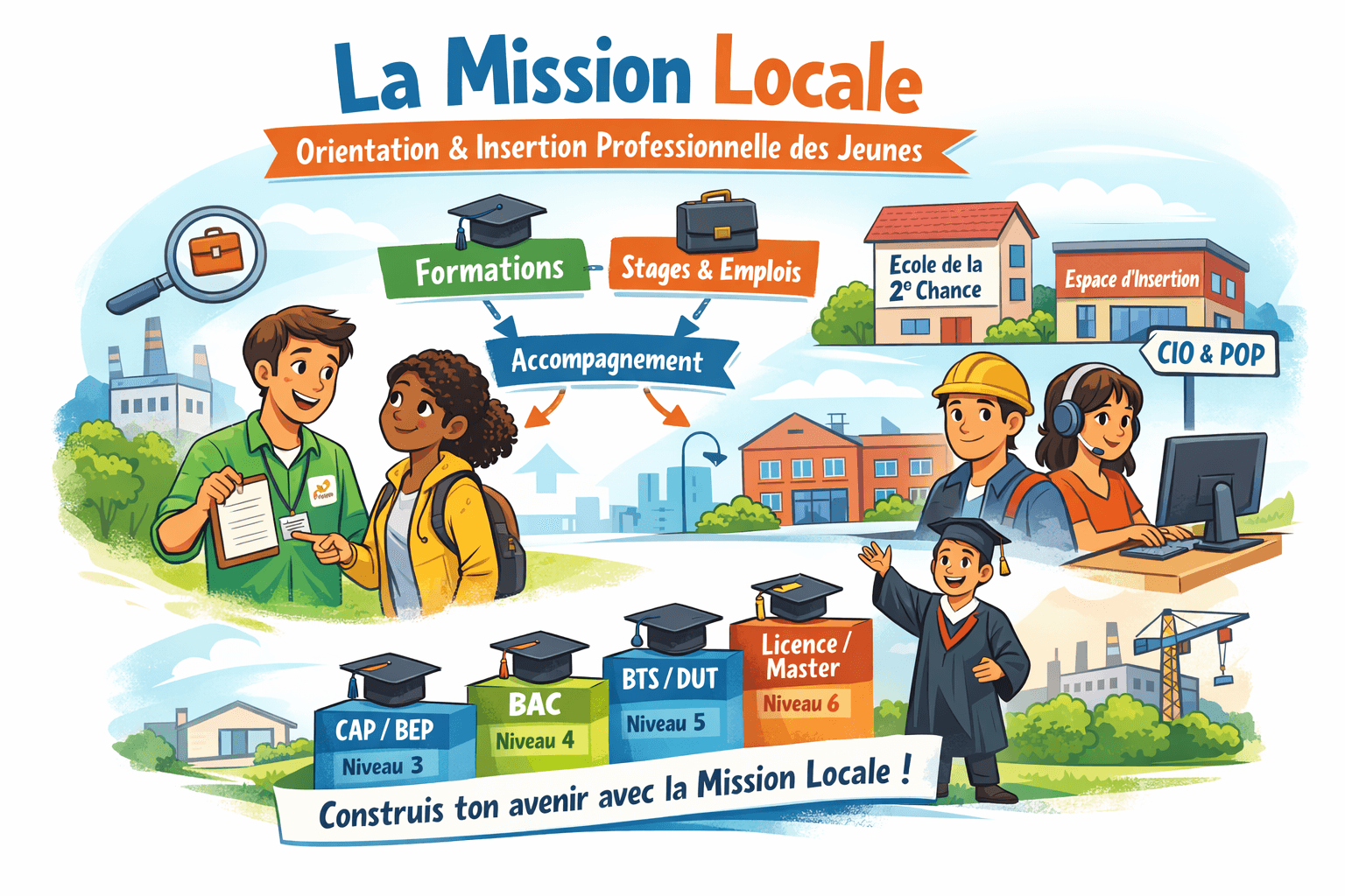 La Mission Locale s’appuie sur les niveaux de formation officiels afin d’orienter chaque jeune de manière pertinente.